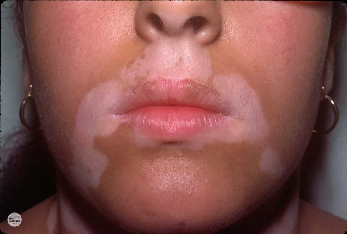 - Symptome : Identifizierung von depigmentierten Hautpartien, die oft symmetrisch und weiß gefärbt sind, ohne weitere Symptome wie Juckreiz.