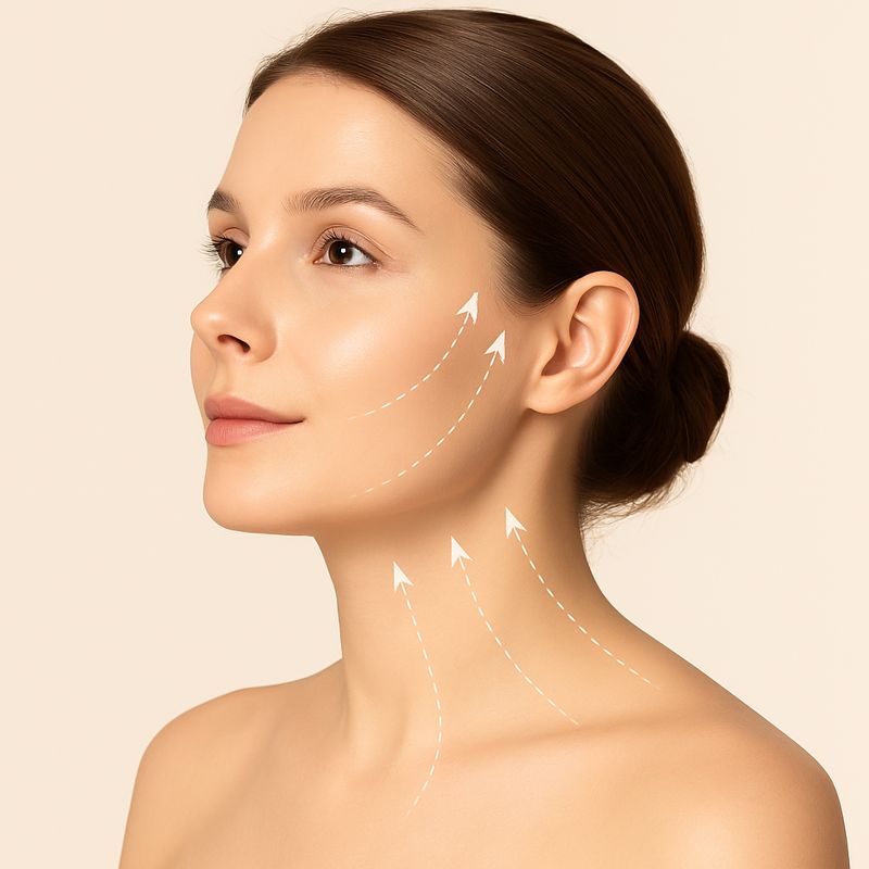 - jawline and lower face,